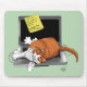 Gato de mesa laranja num computador laptop que segura o laptop refém numa nota de resgate de nota postada para atenção