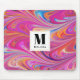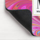 Mousepad com um legal design psíquico. Cor de rosa, laranja e pistas azuis a girar. Vírus hippie retrô.