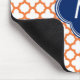 Padrão de quatrefoil laranja e azul real com monograma. Um padrão simples e elegante. O fundo é branco.