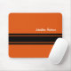 Os homens modernos formam o mousepad com as listras de competência alaranjadas e pretas desportivo queimado. Personalize adicionando seu nome a este mousepad listrado lustroso e à moda do carro de esportes apenas para caras.