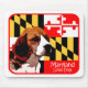 Descrição da arte gráfica de um cão do lebreiro contra o contexto de uma bandeira estilizado de Maryland