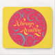 "Lendo sempre" é um pente-rosa brilhante, azul e amarelo com espirais design mousepad que é perfeito para o amante do livro que está sempre lendo.