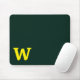 Letra inicial personalizada amarela moderna em design verde escuro.