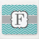 Mousepad Letra Teal Branco Monograma F Chevron