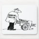 Um limpador de janelas tem seu próprio negócio de limpeza de janelas e está empurrando seu cano, ou carrinho, com uma escada e balde. No verso da sua jaqueta, ele tem as palavras Diretor-Geral. Cartoon engraçado do cartunista britânico Nigel Sutherland