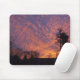 Lindas nuvens cor-de-rosa e laranja claro enchem o céu do nascer do sol além de pequenas árvores negras à distância. Alguns pinheiros altos ficam em silhueta no lado direito da foto. O sol da manhã amarela espia através das nuvens perto do horizonte. Para ver a fotografia Belo Céu Solar em outros itens, clique no link "Artes Rochosas". Fotografia digital a cores. Copyright © Claire E. Skinner. Todos os direitos reservados.