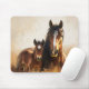Bonito mustang mare e foal pintura digital em tons de terra.