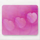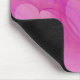 Um design cor-de-rosa com três cores, centrado em um mouse pad.