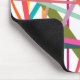 Este mouse pad tem um design geométrico de linhas dispersas em cores florais - tons de rosa, laranja, amarelo, azul e verde.