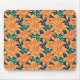 Mouse Pad em um padrão de lírios/dillírios laranja num fundo verde-folha