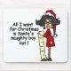 T-shirts, canecas, cartões, autocolantes, botões, bolsas, chaveiros, ornamentos engraçados, e mais certeza de fazer alguém rir é uma fêmea de chapéu de Pai Natal e vestido vermelho com uma longa lista dizendo "Tudo o que eu quero para o Natal é uma lista de crianças travessas!".