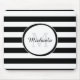Um mousepad grosso preto e branco modish das listras. Personalize este teste padrão esperto adicionando sua inicial conhecida e monogrammed. Este design clássico do monograma é parte da coleção preta da cor do verão dos fundamentos do escritório.