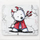 Apresentando a arte do cão Westie Terrier pelo livro infantil Illustrator, Kim Niles; um cachorro de Terrier Branco da Highland Ocidental em um pequeno traje de diabo vermelho.