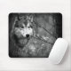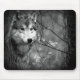 O lobo cinzento é um animal selvagem illusive e capturando o em seu elemento, em preto e branco, cria um mousepad impressionante.