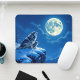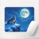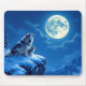 Uma ilustração com lobos uivando na lua de cheio numa noite fria de inverno em pé sobre um penhasco.