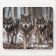 Este mouse pad é mostrado com uma impressão de foto de uma matilha de lobos selvagens no Parque Nacional de Yellowstone. Personalize este item ou comprar como está. Imagem do stock