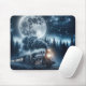 Uma locomotiva a vapor vintage atravessa uma pista sob um vasto céu estrelado com uma lua de cheio massiva iluminando a cena