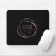Mousepad personalizado chic exibe seu nome comercial ou a escolha do texto personalizado dentro a faux rosa dourfoil abstrato de círculo em um plano de fundo preto.