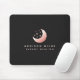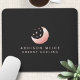 Tampo de Mouse Logotipo de Lua Crescente e Estrelas em Dourado Celeste. Este design elegante e moderno apresenta uma lua e estrelas em um fundo preto sólido.