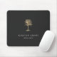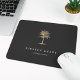 O mouse personalizado do chic para sua empresa ou escritório doméstico apresenta duas linhas de texto personalizado em caracteres brancos clássicos, em um fundo de cinza de carvão enfeitado com uma ilustração de palmeiras tropicais em folha de ouro falsa.