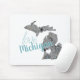 Ame o Pad do Mouse Silhouette Chupado Floral de Michigan. Michigan Floral encheu Silhouette com "Michigan" na tipografia cursiva. Um presente de excelente para qualquer Michigander no coração. Este mouse pad tem a silhueta de Michigan preenchida com um padrão floral de papoila em cinza e blues com um coração branco. Design de The Michigander.