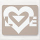 Um design de logotipo gráfico, feito sob medida. AMOR em branco na cinza.