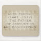 Luca Pacioli (1447-1517) era um matemático italiano, Franciscan friar, colaborador de Leonardo da Vinci, e um contribuinte seminal para o campo agora conhecido como contabilidade. Ele é chamado de "Pai da Contabilidade e Contabilidade".