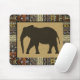 Imagem digital de um quadro de tecido de lama africano em castanhos ricos. O centro tem um tecido tecido pesado com a silhueta de um elefante.