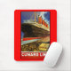 Linha poster de Cunard do vintage do forro de oceano que mostra uma ideia severo do Lusitania do RMS da quatro-pilha que embarca do cais.