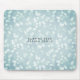 Pasta de mouse com padrão chic e borbulhante apresenta um fundo de luzes bokeh em tons de azul e aqua gelados pastel. Personalize com um nome, monograma ou nome comercial em caracteres cartonados modernos, se desejar.