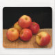 Este mousepad caracteriza ainda uma composição muito simples da vida de seis maçãs vermelhas e amarelas brilhantes bonitas em uma esteira da palha contra um fundo preto.