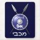 Uma representação do escudo de um Maccabee e duas lanças. O escudo é enfeitado por um leão e o texto lendo "Yisrael" (Israel) no alfabeto paleohebraico. Maccabee também aparece no hebraico moderno. Os Macabeus eram rebeldes judeus que libertaram Judeia do jugo do Império Seleúcio. Chanukkah não é apenas um festival de inverno-médio com velas e iguarias fritas. celebra uma vitória militar, e garante a liberdade religiosa, sobre o Império Seleúcio. Além disso, a revolta foi uma guerra civil envolvendo aqueles judeus que eram leais ao G-d e aqueles que tinham adotado o Hellenismo dos Seleucids.