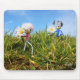 Fubby poppetjes die madeliefjes plukken in het gras. Margriet bloempjes die romantiek uitstralen en liefde voor elkaar.