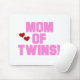 Mãe das T-shirts gêmeas, canecas, botões, cartões, mousepads, e outros artigos da Mãe dos Gêmeos com texto rosa e dois corações vermelhos, perfeito para a mãe das raparigas gêmeas!