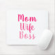 Mamãe Esposa Chefe, rosa e branco, texto personalizado fofo moderno do Mouse Pad. Texto rosa totalmente personalizável, fundo branco. presente de excelente para a mãe no dia da mãe ou no seu aniversário.