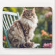 Gato Maine Coon numa cadeira num jardim ensolarado