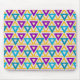 Este mouse pad tem um design de Bauhaus de triângulos repetidos em ouro, turquesa, chalé, roxo e ouro leve. Se você gosta do design, mas prefere cores diferentes, me mande mensagem.