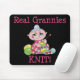 Se você é uma avó ou conhece uma avó que faça malha, esta é para você! Bonito, divertimento, design da indicação que caracteriza uma senhora idosa pequena com as bolas do fio e das agulhas de confecção de malhas, trabalhando em seu projeto, acentuado com rotulação cor-de-rosa brilhante! "MALHA real das avós!" Uma ideia hilarous do presente para knitters novos e velhos igualmente!