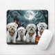 Libere o espírito assustador com esta design sombria do Dia das Bruxas apresentando um bando de cachorros sob um céu escuro e iluminado, cercado por morcegos voadores e abóboras brilhantes. Perfeito para aqueles que amam um toque de diversão terrível com seus amigos peludos!
