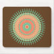 Um design de mandala inspirado pela cultura indiana ou marroquina. Este design apresenta cores de pêssego/laranja, verde-menta contra um fundo personalizável. Sereno e pacífico e cheio de energia paralela.