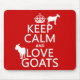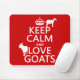 O design lê "mantem a calma e ama cabras". Duas silhuetas da cabra estão nas letras. É um design bonito, excelente para qualquer um que trabalha com cabras, mantem cabras, ou apenas ama cabras.