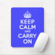 Mantenha-se calmo e continue no estilo vintage design num fundo azul arco-íris.