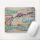 Acelere o seu escritório com este "Um tipo" de mouse inspiracional! Ele apresenta uma seta com flores rosas, roxas e brancas lindas! e a citação uplifante... "MANTENHA CALMA TENHA FÉ" em um fundo de madeira castanha clara! Design de Arte Gráfica Original do Artista Kerry Miller.