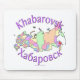 Mapa colorido mão-rendido bonito da Federação Russa com o lugar da cidade de Khabarovsk identificado por meio de uma bandeira. Nome da cidade igualmente no russo, Хабаровск. Presente original da adopção de Rússia para famílias com as crianças de Khabarovsk. Projetado por Hendrika de www.RedThreadMaps.com
