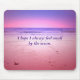 névoa roxa e rosa sobre a água do oceano com a praia e a citação de inspiração