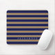 Nome simples e personalizado do monograma Marinho castanho Blue Stripes Pad do Mouse Padrão.