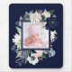 Este na moda e belo mouse pad apresenta um quadro de marinho azul, azul claro e azul-claro e flores cor-de-água cor rosa-rosa com folhas verdes e beige neutras, e sua foto pessoal favorita em um fundo azul-marinho escuro.