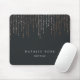 O mousepad personalizado chic exibe seu nome, nome comercial ou escolha de texto personalizado em caracteres brancos clássicos em um plano de fundo preto suave rico, com fios verticais de linhas de fio rosa dourado falso em cascata a partir do topo.
