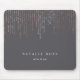 O mousepad personalizado chic exibe seu nome, nome comercial ou escolha de texto personalizado em caracteres brancos clássicos em um plano de fundo de cinza rico com fios verticais de cordas de folhas de rosa douradas falsas em cascata a partir do topo.