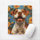 Mousepad Marrom e Cachorro Branco e Flores